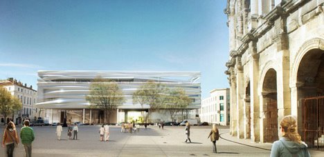 Franco-Brazilian architect Elizabeth de Portzamparc has won a competition to design a museum of Roman history in Nîmes with this building dressed in a pleated glass toga.